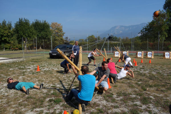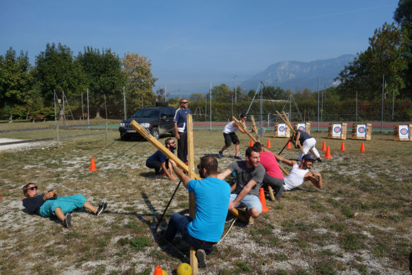 Cette animation dynamique et unique favorise la coopération et la précision en équipe, les projectiles sont sans danger et la distance de jeu réglable à souhait. Pendant que l’équipe s’organise pour envoyer une balle à distance un réceptionneur se prépare à attraper cette balle et ainsi marque les points pour le classement final.