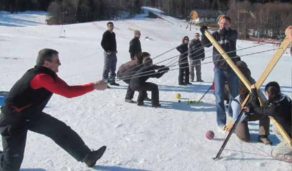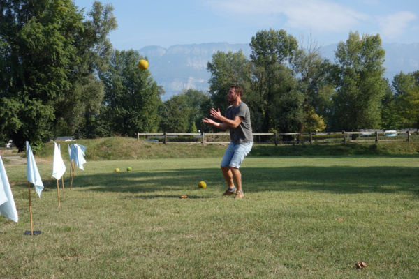 Cette animation dynamique et unique favorise la coopération et la précision en équipe, les projectiles sont sans danger et la distance de jeu réglable à souhait. Pendant que l’équipe s’organise pour envoyer une balle à distance un réceptionneur se prépare à attraper cette balle et ainsi marque les points pour le classement final.